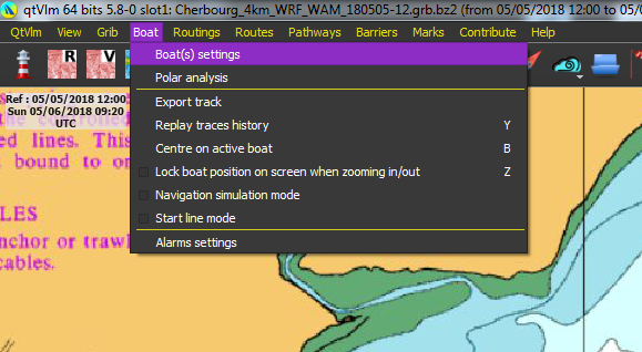 Setting a polar in qtVlm. Boat>>>>Boat(s) Settings