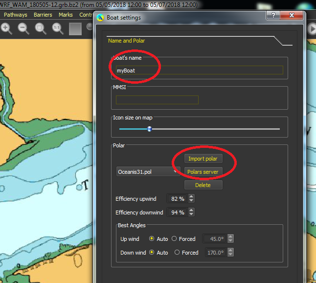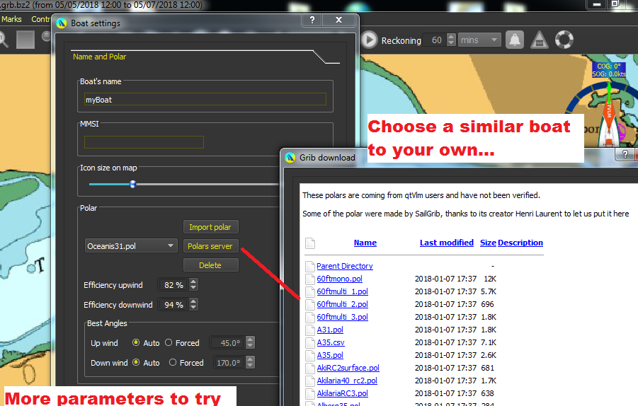 Set parameters..give the boat a name, and either import your polar if you have one..or go to the polar server and choose one from the long listings.