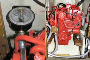 With everything finished I just had to see if the new engine would start up and run. Without a cooling water supply, I removed the water pump impeller to save it burning out. The fuel cock was opened and I started to bleed the fuel line. Immediately found a fuel leak on the outlet from the water separator, so had to remake the compression joint. All the other connections seemed OK with no leaks. 10 seconds on the heater plugs then a turn of the key and the engine fired and died. Two more attempts and this time (on Christmas Eve 2004) it kept going. Our new engine was up and running...