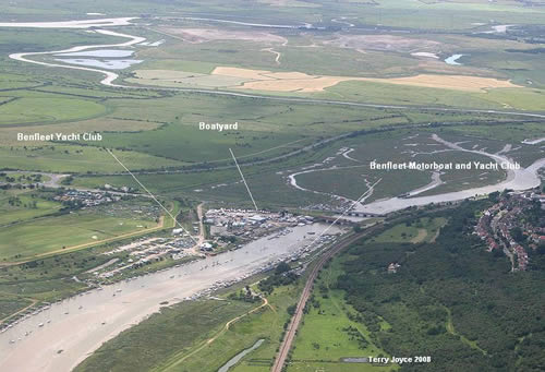There are no marinas as such to cater for visiting yachts, but the local boatyards at Leigh, Benfleet and Canvey can handle lifting and repairs and may be able to offer temporary drying moorings. Alternatively it may be possible to arrange an overnight mooring at Benfleet Yacht Club for other yacht club members.