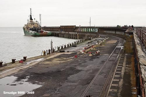 Folkestone lies a few miles to the west of Dover, and is easy to recognise from sea with it's single large breakwater.