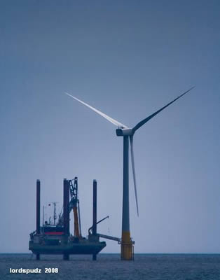 The windfarm is easily recognisable and centered on 52°39'N and 1°47'E. It consists of 30 turbines 61 m high in each. The blades are 80 m in diameter with the clearance height of 18 m. The bottom section of each turbine is painted bright yellow.