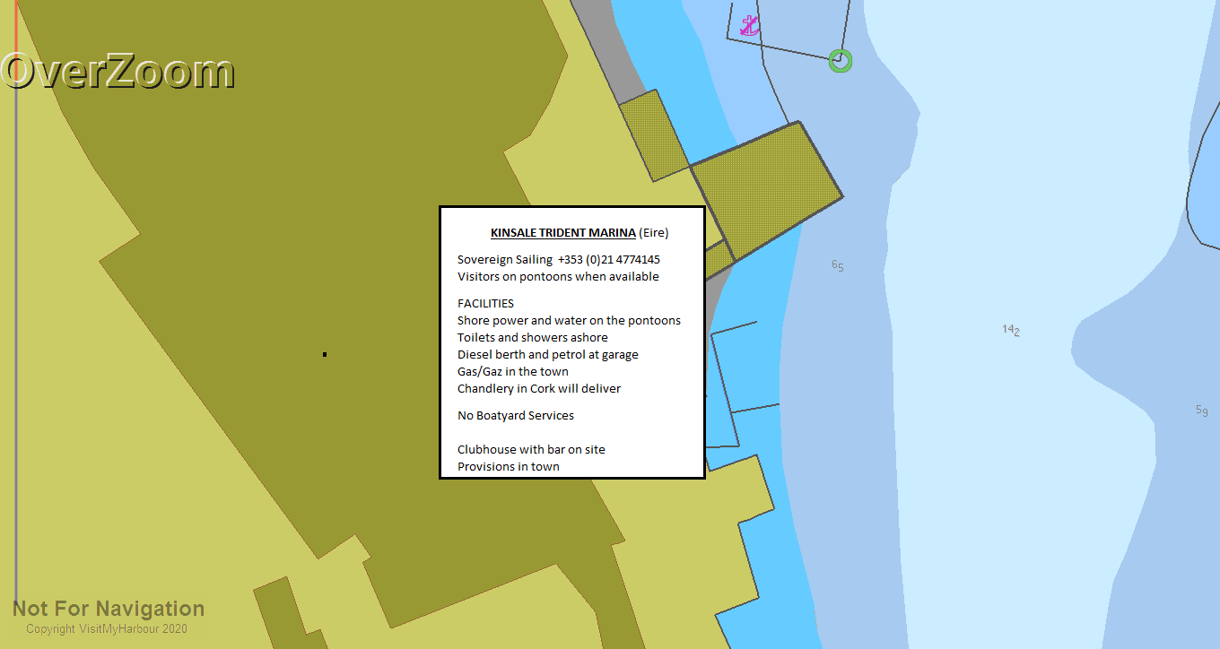 ........ Kinsale Yacht Club's off the town front, Castlepark on the West side of Blockhouse Point and Trident Marina off the Trident hotel complex They all have electricity and water on the pontoons and charge for the electricity. KYC charges in bands in old money (feet) but it works out at 3.0 Euros per metre per night for a 10 metre boat and Castlepark 3.50 Euros per meter per night (though they have a week deal at 20Euros pm)