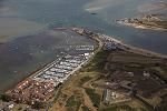 Approach is made between two fairly extensive shingle banks waiting to catch the unwary. Once within, harbour dues (see below) have to be paid by all users, whether you're using the Marina or not.